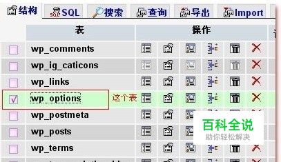 我们登陆phpmyadmin,并在数据库中找到表名为wp_options的表,点浏览