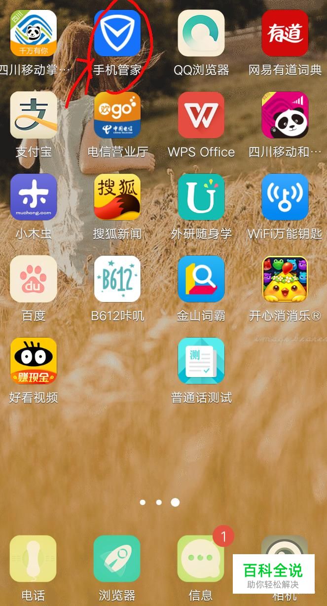 打开手机,找到“手机管家”,点击“手机管家”打开此文件