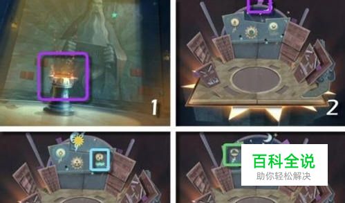 把边上几个小签都调调(2),拉出右侧的老头,老头吐火之后左侧也出来可以拉动的小签,出现绿色的拉杆。拉动之后人像后面出现了长长的甬道。可是书台还在闪光让我很不爽,没有道具只能继续前行。