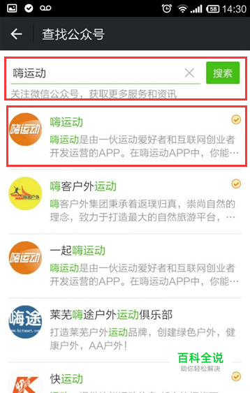 在搜索框内搜索:嗨运动。
