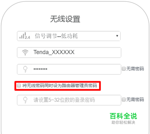 二、设置为与wifi密码相同 如果在第一次设置腾达AC9路由器的时候,勾选了“将无线密码同时作为路由器管理员密码”,也就是把wifi密码作为登录密码。那么腾达AC9路由器的登录密码,就是wifi密码。 此时,打开192.168.0.1或者tendawifi.com时,可以输入wifi密码登录到设置页面。