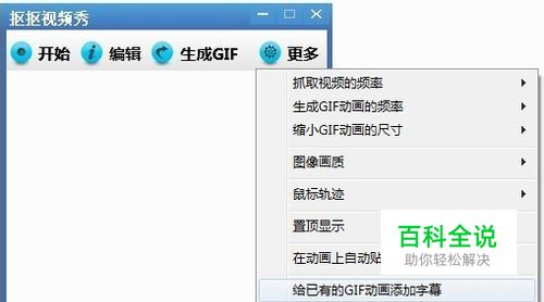 接下来,我们要在这个动画素材上加上一行文字,就可以变成我们想要的动态表情了。这里,我们使用的工具软件是 “抠抠视频秀”。打开软件后,选择菜单中的“更多”,“给已有的GIF动画添加字幕”。