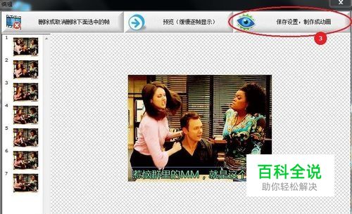 在菜单中选择你想要的 GIF 素材以后,软件会自动打开如下的“编辑”窗口,然后按以下步骤: 1)添加字幕 2)修改字幕的内容,文字字体,格式,外观等等。( 这里,请发挥你的创意,结合你GIF动画素材的场景,加上一个搞笑的台词,将是这个动态表情动画是否有意思的关键) 3)保存设置,制作动画