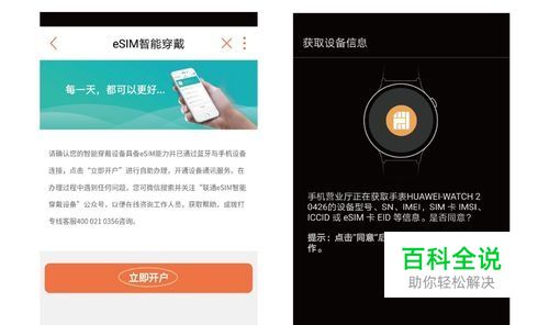 说明:若您使用非华为品牌手机,点击 立即开户 无反应,请在手机上设置允许 华为穿戴 app关联启动或自启动,具体设置步骤请搜索eSIM开通常见问题查看。