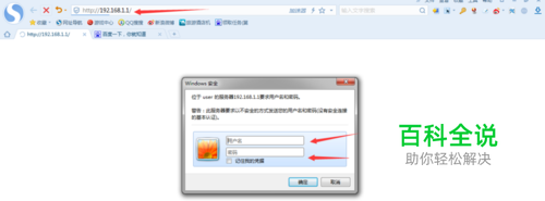 然后在网址处输入路由器登陆地址;192.168.1.1,不同路由器网址不同。注意看说明书。按照说明书输入登陆密码和账号。如下图所示。