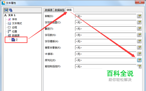 2、选择数据源,将右侧界面切换至“转换”,单击“序列化”栏位后的序列化设置按钮。