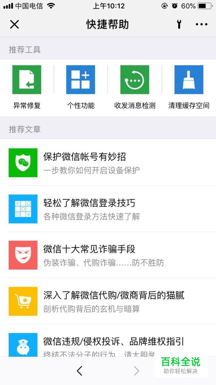 点击进入后,选择【快捷帮助】-【异常修复】。