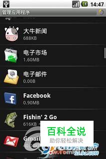 卸载软件最简单的方式就是使用系统自带的工具进行卸载,但是不支持批处理。点击主屏幕拉出程序菜单,然后点击“设置”图标,进入后再后点击“应用程序”选项,然后在进入的子菜单中再点击“管理应用程序”选项,这样就进入了卸载工具。