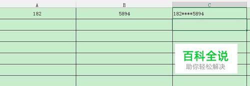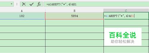 比如有一个手机号,需要将它中间四位用星号代替,例如182****5894这样,用以上三种函数都可以。我们先来看rept函数。 . rept函数语法=Rept(text,number_times) text就是文本,number times是文本重复的次数,例如text是星号,number times为4,那么输出的就是四个星号:**** 要得到182****5894这样一个手机号,我们需要先准备2个单元格,A1填182,B1填5894,然后我们在C1输入函数:=A1&rept("*",4)&B1,&是英文and,代表连接,然后回车就可以得到了。