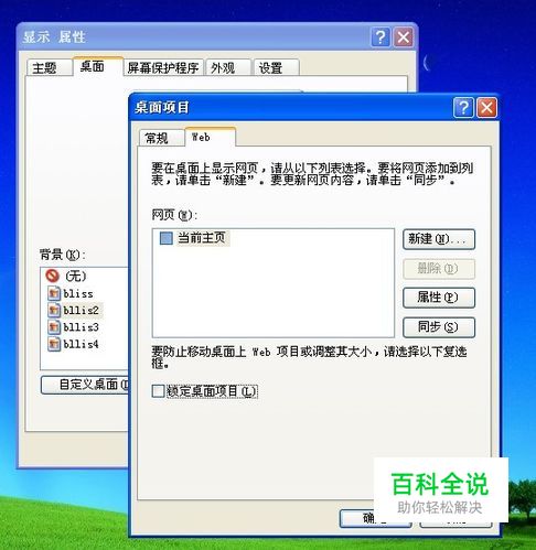方法1:在桌面空白处点右键,“属性”→“桌面”→“自定义桌面”→“web”选项卡,将“网页”下面方框里的网址全部删除,并保持在“锁定桌面项目”前不要打勾,确定即可。