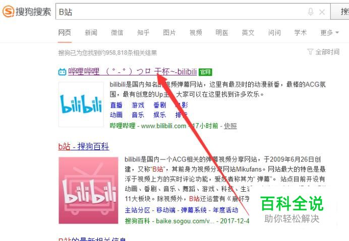 打开搜狗浏览器,搜索“B站”,点击并进入,如图所示。