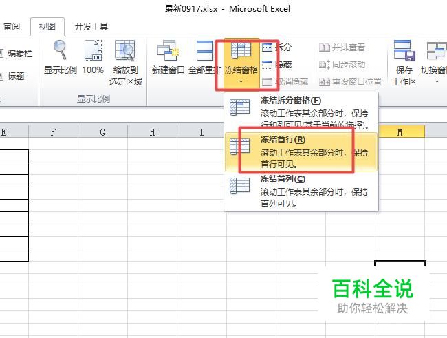 然后我们点击冻结窗口,弹出的界面,我们点击冻结首行;