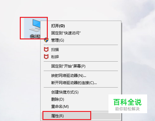 选中“此电脑”,右键选择“属性”。