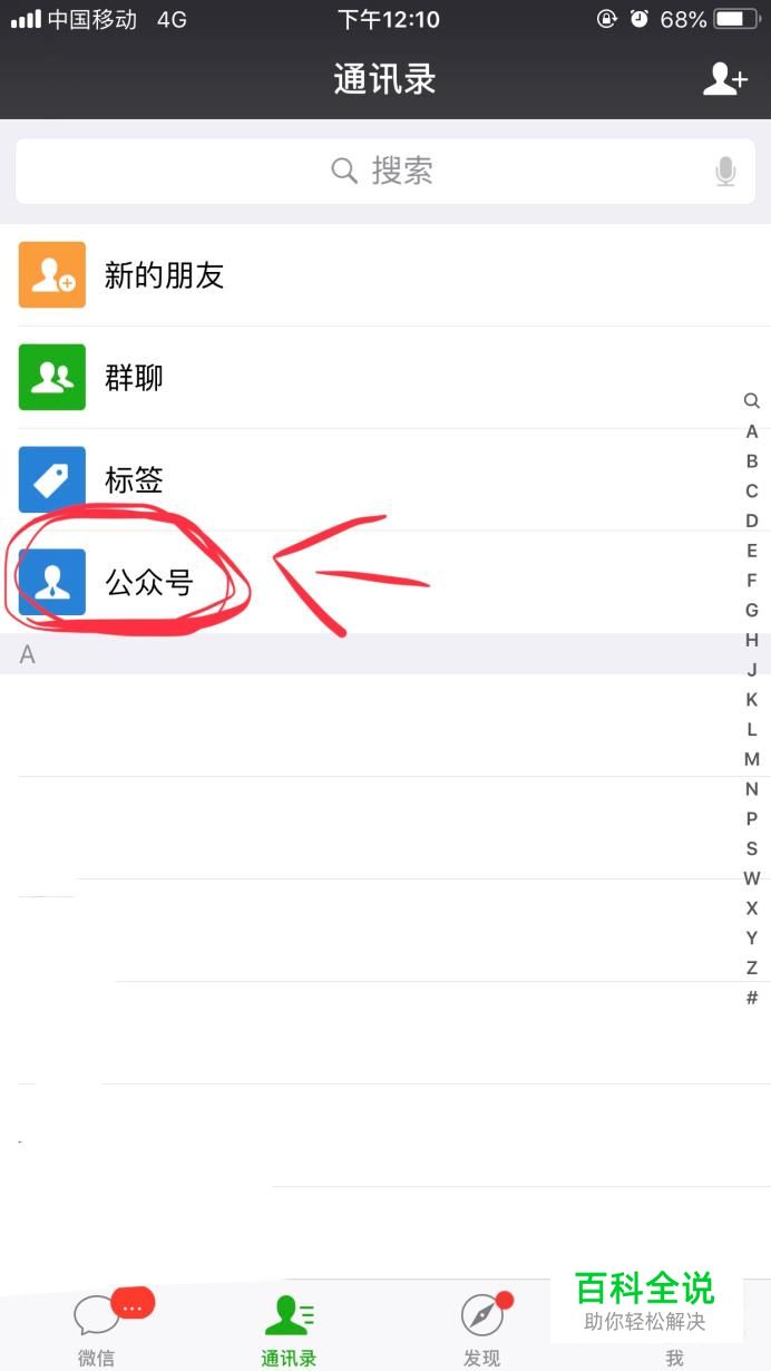 首先按图提示,打开微信并找到微信公众号