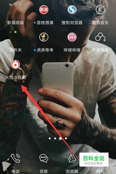 打开手机,找到“火山小视频”,点击并进入,如图所示。