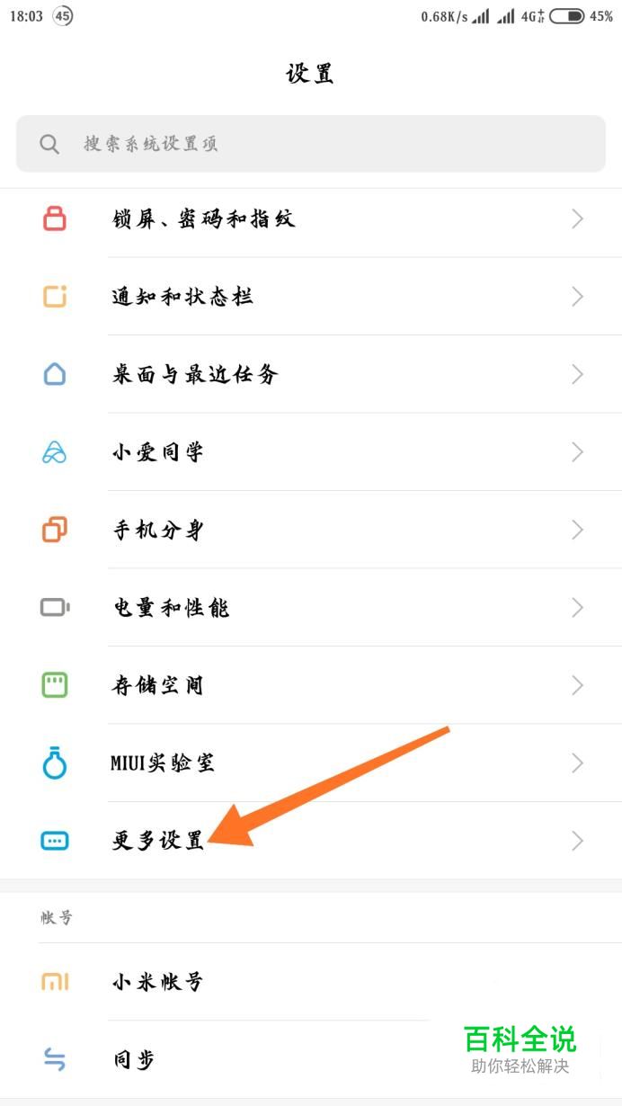 打开小米手机的系统设置,向下拉一下找到“更多设置”。