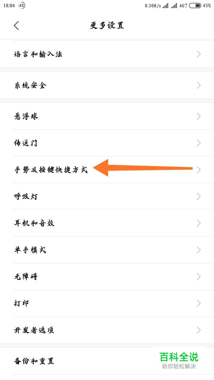 在这里面我们可以看到有“手势及按键快捷方式”,点击一下。