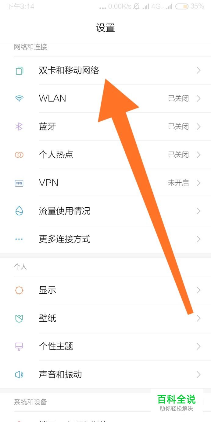 然后点击进入“双卡和移动网络”设置选项。