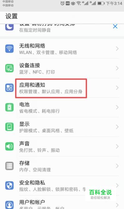进入设置后,我们点击应用和通知;