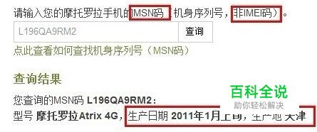虽说近两年摩托罗拉已不复当年的风光,但作为一个拥有深厚底蕴的国际知名厂商,摩托罗拉并没有因此倒下,在Android系统开始兴起后,它借势推出了多款力作,无论质量还是销量都有着不错的表现。相比上面三个品牌,摩托罗拉手机的出厂日期和产地查询方法又有所不同,它用的并不是IMEI、SN、序列号这些编码,而是靠一个叫MSN的编码来进行查询。