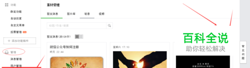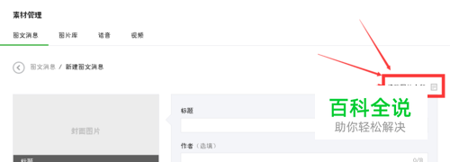 登陆公众号后台 点击管理下面的 素材管理,选择右边的 新建图文消息