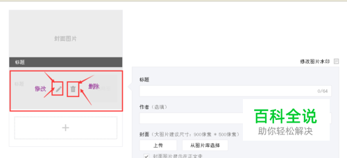 点击 铅笔图标可以编辑已经做好的图文,点击 删除图标,会把已经添加的多图文删除