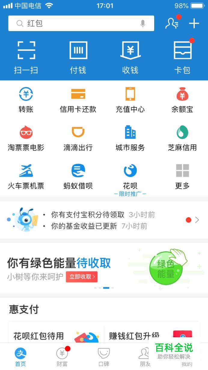 打开支付宝,选择顶上的付钱。