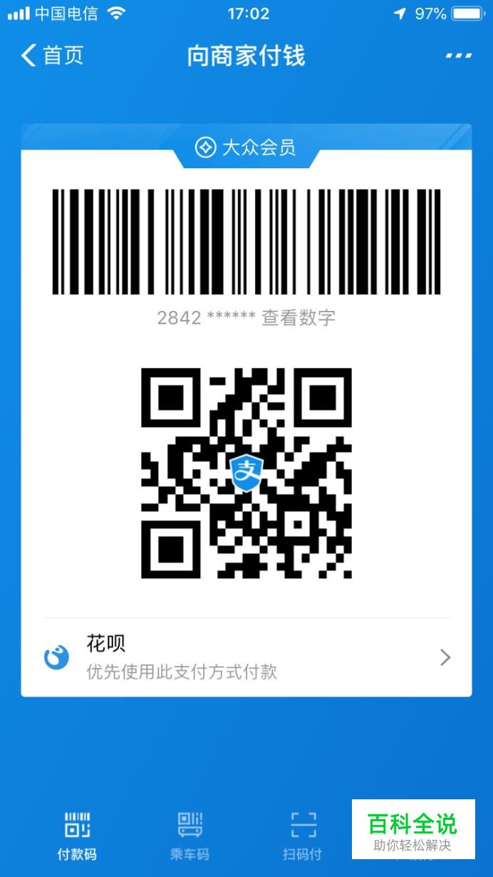 跳出付款二维码,一般这里都是优先使用花呗,如果你设置过扣款顺序就会改变。
