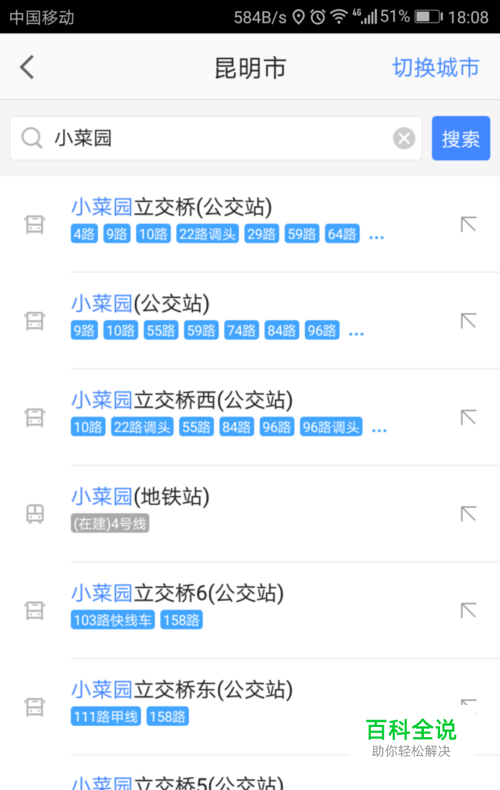 小编这里输入站点的一部分,就会弹出这些线路,大家就可以根据自己的需要自行查看了。