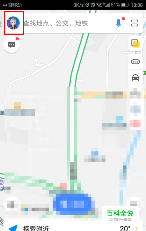 首先,我们进入高德地图的主页,点击上方那个自己的头像。