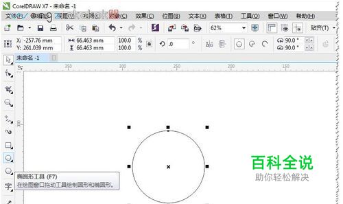 那你想对一段文字进行造型的话。首选画一个特定的矢量图形,比如:矩形,圆形等。这里用圆形做实例。如图