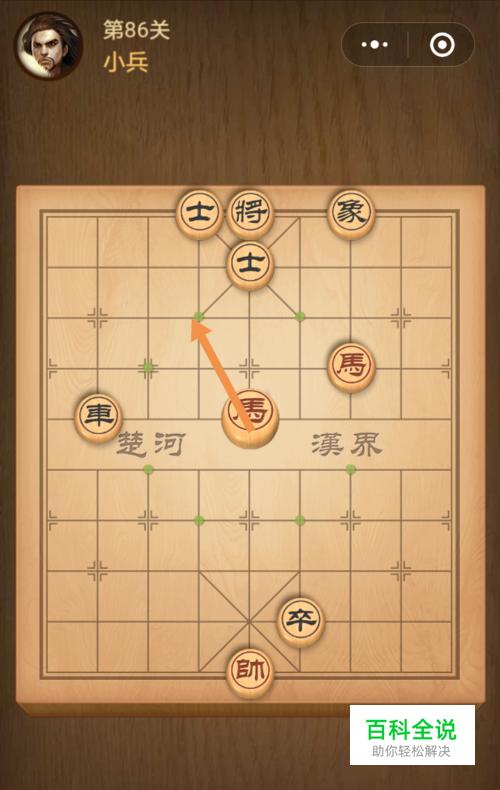 第三步馬移动到下图中箭头标注的位置就过关了。