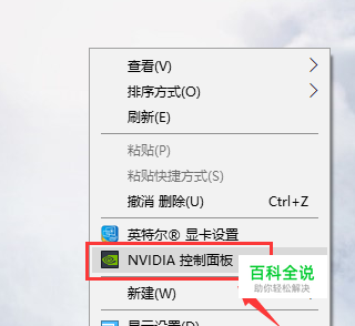 返回桌面,右键单击桌面空白处,点击Nvidia控制面板,如下图所示