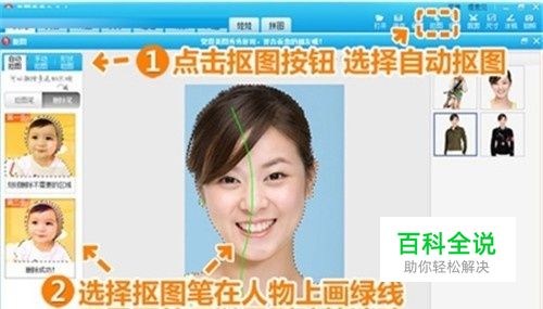 打开“美图秀秀”,打开一张要处理的图片,点击“抠图”--“自动抠图”。在弹出的界面中,按照左侧提示用抠图笔在人物上画绿线,即可轻松抠图人像。