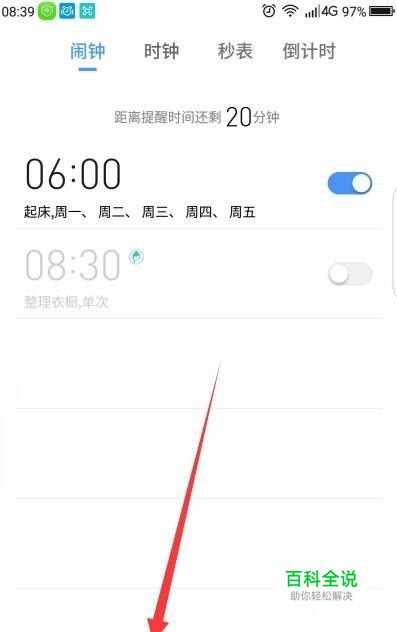 首先在手机上找到闹钟时间软件打开,不管是哪种闹钟,操作都是大同不异的。