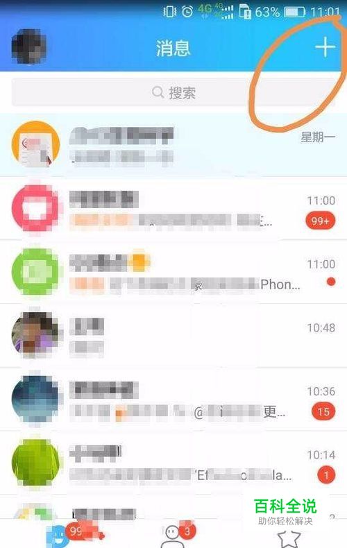 第一步:打开手机QQ,登录账号;在首页找到右上角的加号,点击。