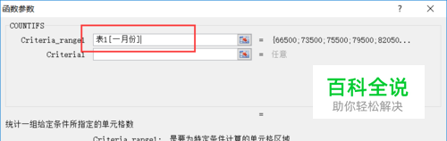 函数公式中,取出总的销售,即参数输入“表1[一月份”