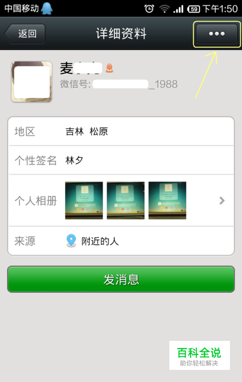 首先打开要修改名称的好友的名片,点击 右上角的图标,如下图