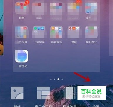此时在华为主屏的下方会出现一系列的工具栏,我们可以在下方工具栏的下方看见一个设置图标按钮,我们点击此设置图标按钮。