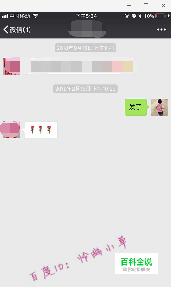 打开微信,随便打开一个好友的聊天界面,把这个聊天界面截图(苹果手机截图快捷键是:电源键+Home键)。