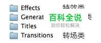 FCPX 10.2.3 以下版本插件分为四大类(特效、转场、标题、发生器)如下图分布位置。