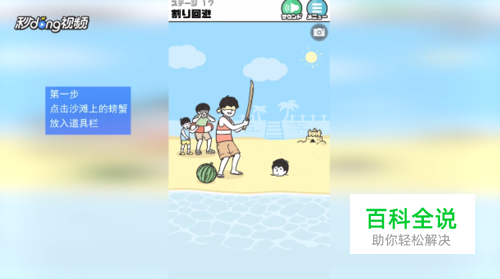 点击沙滩上的螃蟹,放入道具栏。