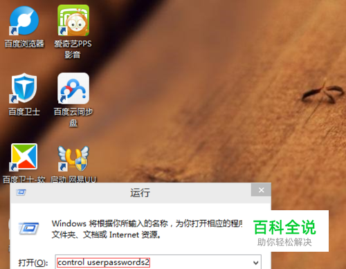 在运行框中输入“control userpasswords2”,点击“确定”或直接按回车键,弹出“用户帐户”窗口;