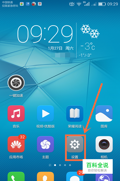 1.第一步,进入 手机系统主页,选择点击屏幕上的“ 设置”按钮;