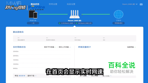 输入管理员密码后,在页面会显示实时网速及连接小米路由器的终端个数。