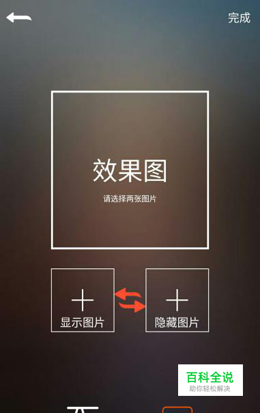 1、点击下面的左右两图,可分别添加文字和图片,想修改再次点击就好了,点击上面的主图,可预览制作效果。(如下图) 此处,还有一个惊喜,看见两个小图片中间的红色交换按钮了吗?点击它,可以交换显 示图和隐藏图的,就不用重新再添加图片那么麻烦了。