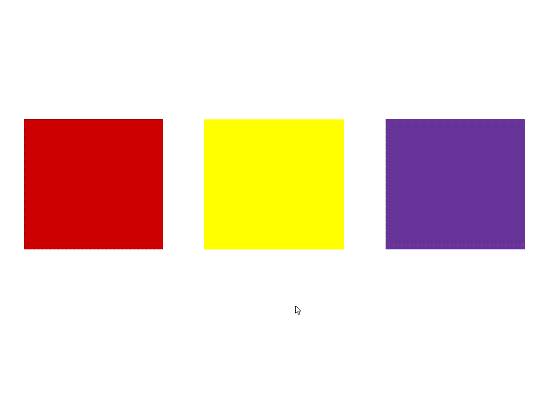 依次修改三个正方形的形状填充为红色、黄色、蓝色,并设置形状轮廓为无。