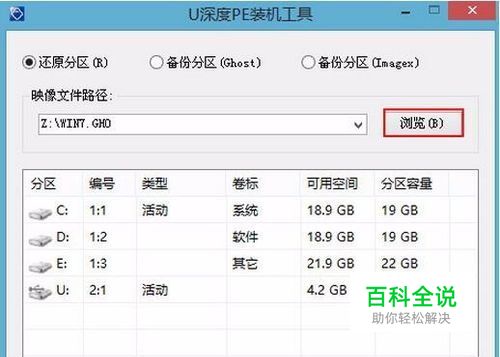 进入win8pe系统,将会自行弹出安装工具,点击“浏览”进行选择存到u盘中win7系统镜像文件,将c盘作为系统盘,如下图所示: