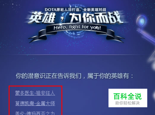 接着在打开的“lol官网”页面中,找到并点击“测测你适合哪些英雄”链接。