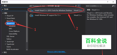 visual studio2015新建c++工程以及安装c++环境